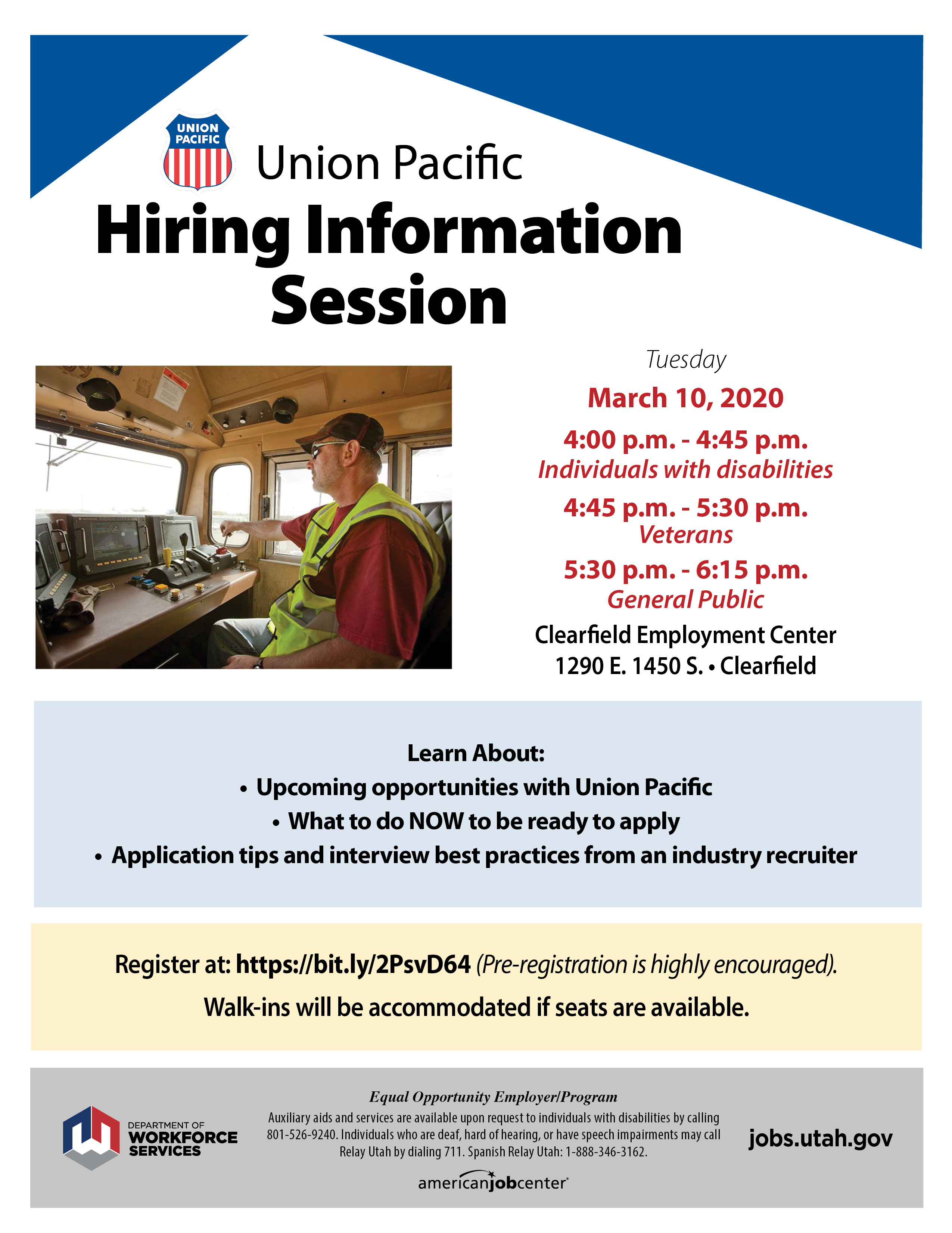 Union Pacific operates North Americas premier railroad franchise covering 23 states in the western two-thirds of the United States. If you reside less than 300 miles from the hiring location.